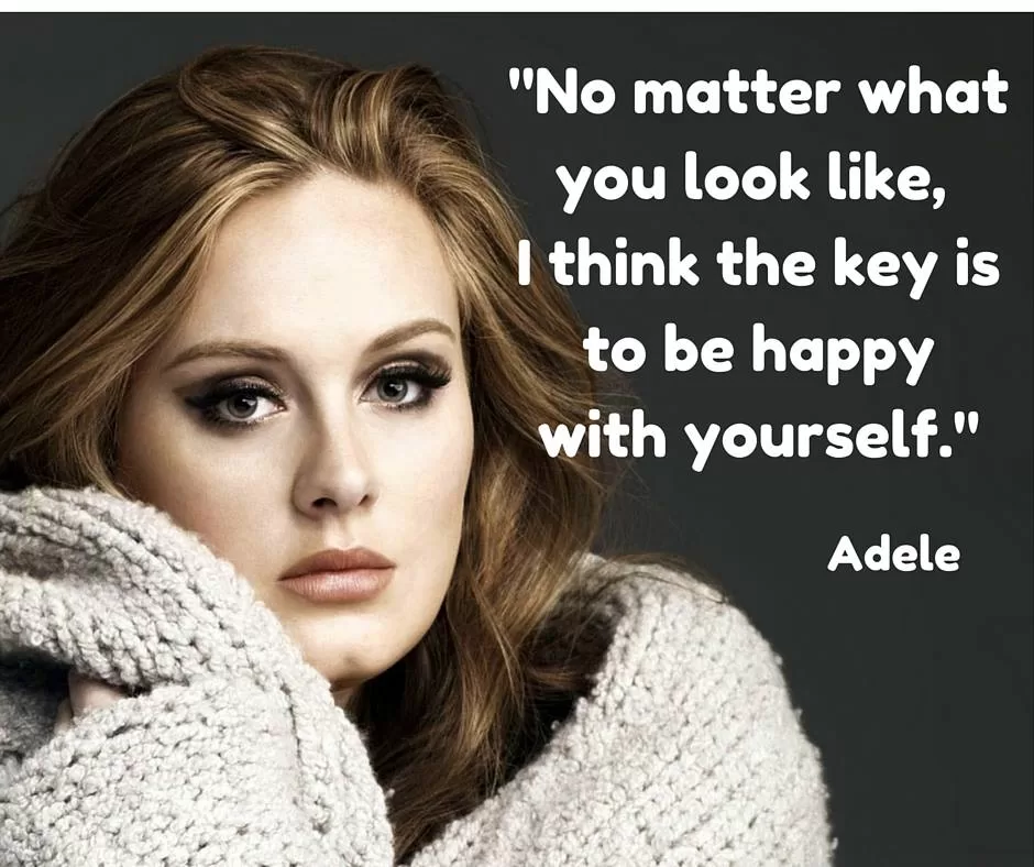 “No matter what you look like, I think the key is to be happy with yourself.” Adele