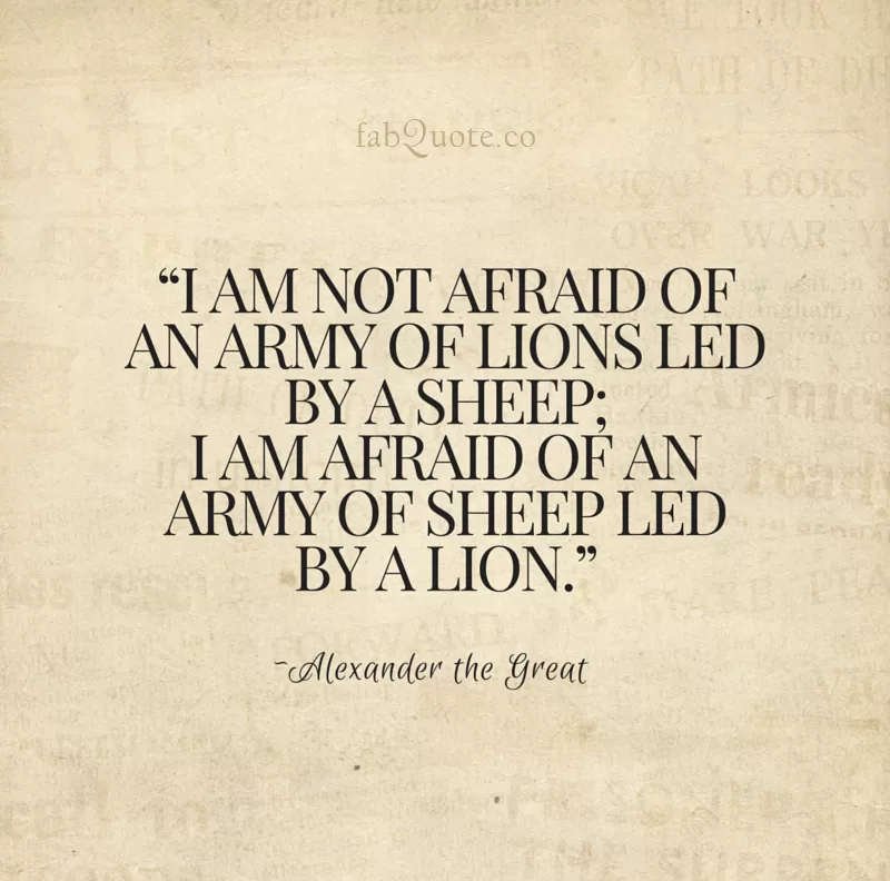 “I am not afraid of an army of lions led by a sheep; I am afraid of an army of sheep led by a lion.” Alexander the Great