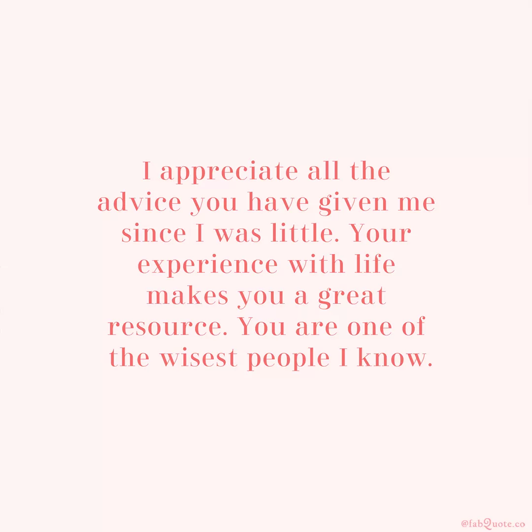 I appreciate all the advice you have given me since I was little. Your experience with life makes you a great resource. You are one of the wisest people I know.
