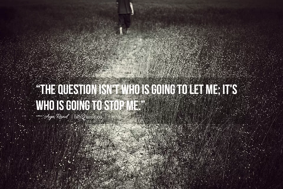 “The question isn’t who is going to let me; it’s who is going to stop me.” Ayn Rand