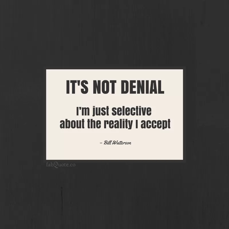 It’s not denial. I’m just selective about the reality I accept. – Bill Watterson