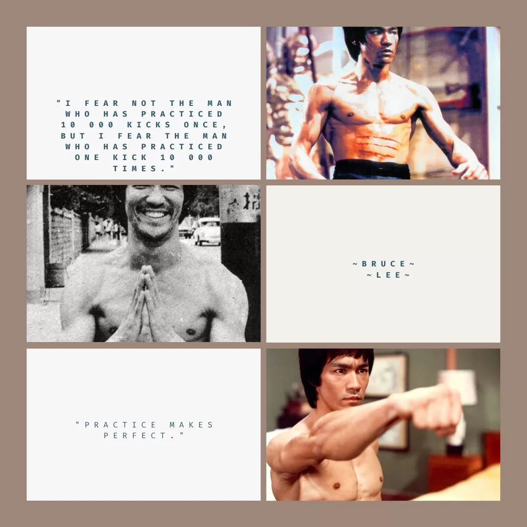 “I fear not the man who has practices 10,00 kicks once, but I fear the man who has practiced one kick 10,000 times.” – Bruce Lee
