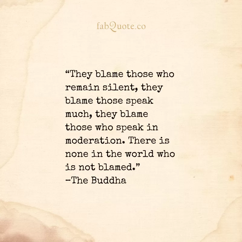 “They blame those who remain silent, they blame those speak much, they blame those who speak in moderation. There is none in the world who is not blamed.” The Buddha