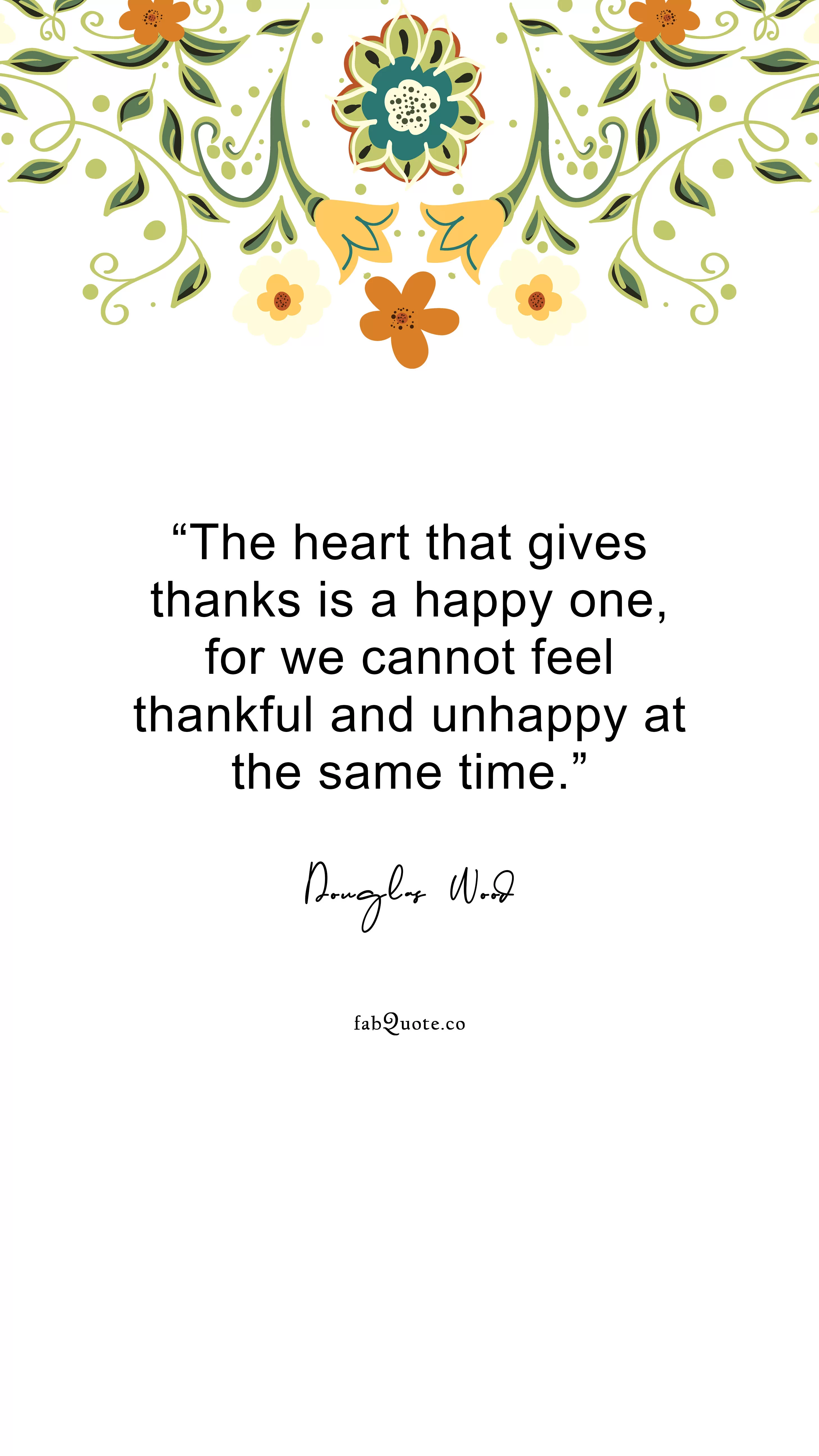 “The heart that gives thanks is a happy one, for we cannot feel thankful and unhappy at the same time.” Douglas Wood