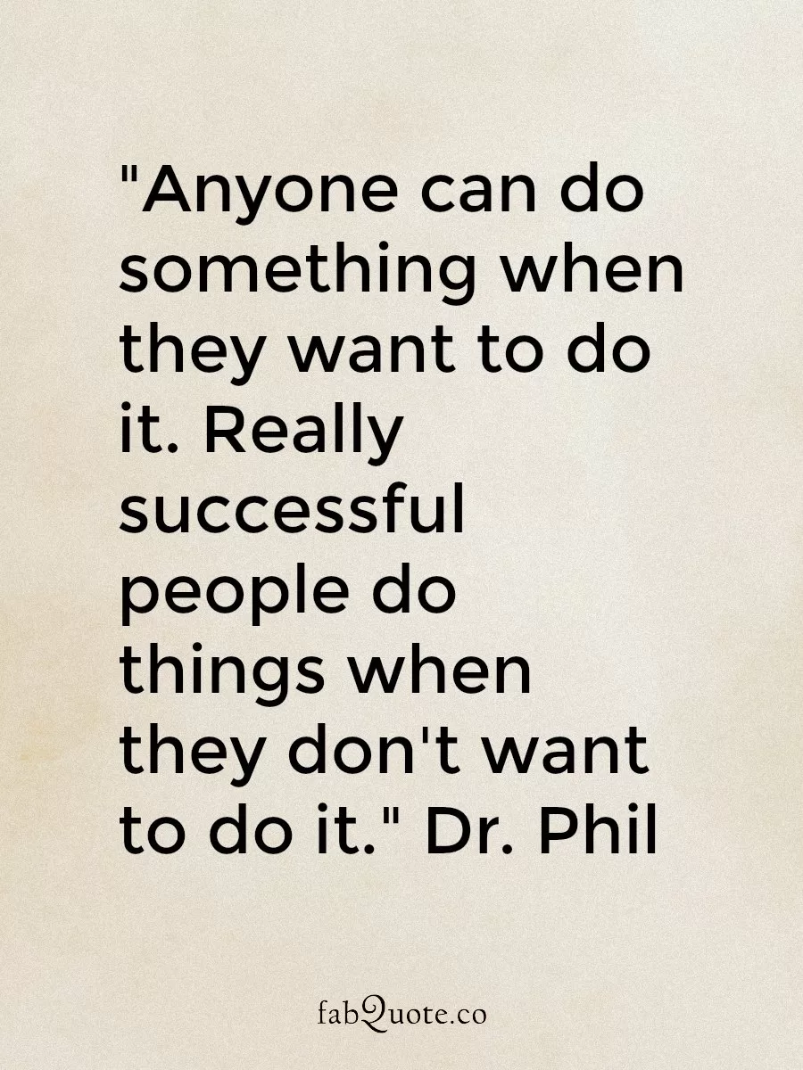 “Anyone can do something when they want to do it. Really successful people do things when they don’t want to do it.” Dr. Phil