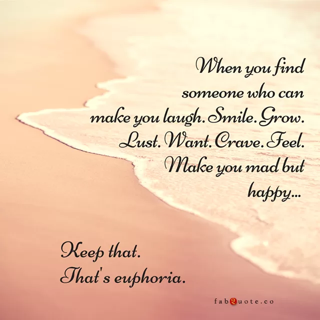 “When you find someone who can make you laugh. Smile. Grow. Lust. Want. Crave. Feel. Make you mad but happy… Keep that. That’s euphoria.”