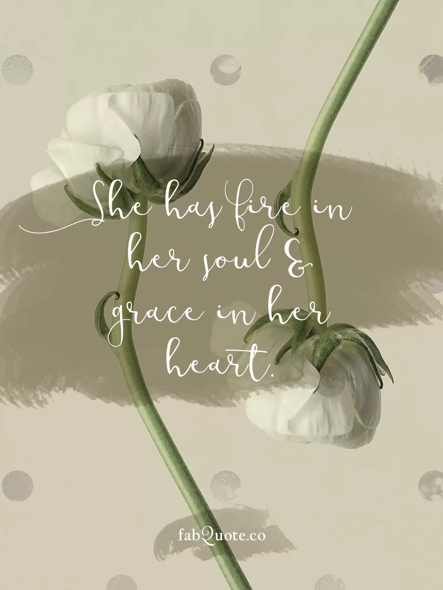 “She has fire in her soul and grace in her heart” Attitude Quote