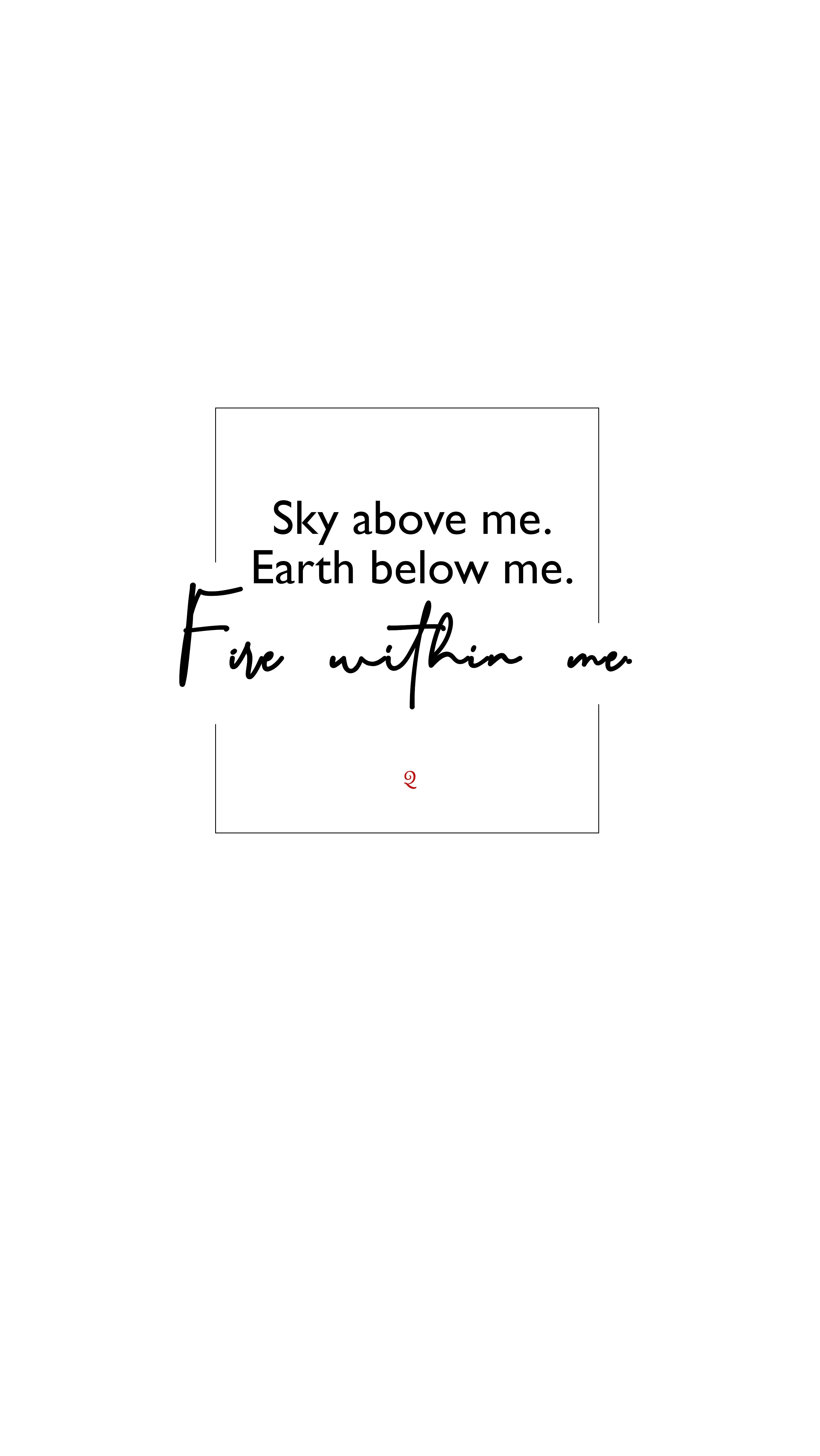 “Sky above me. Earth below me. Fire within me.”