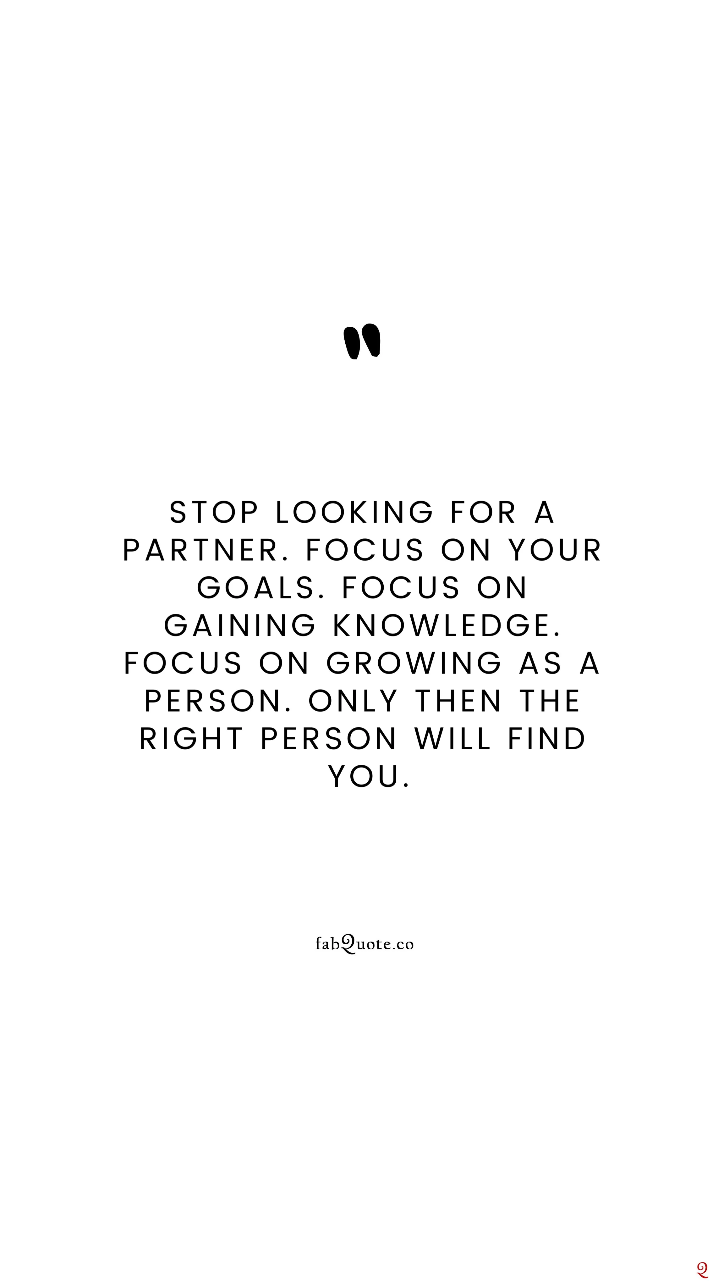 “Stop looking for a partner. Focus on your goals. Focus on gaining knowledge. Focus on growing as a person. Only then the right person will find you.”