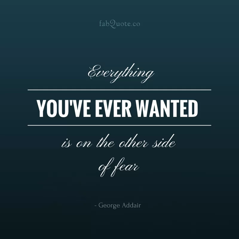 “Everything you’ve ever wanted is on the other side of fear.” George Addeir