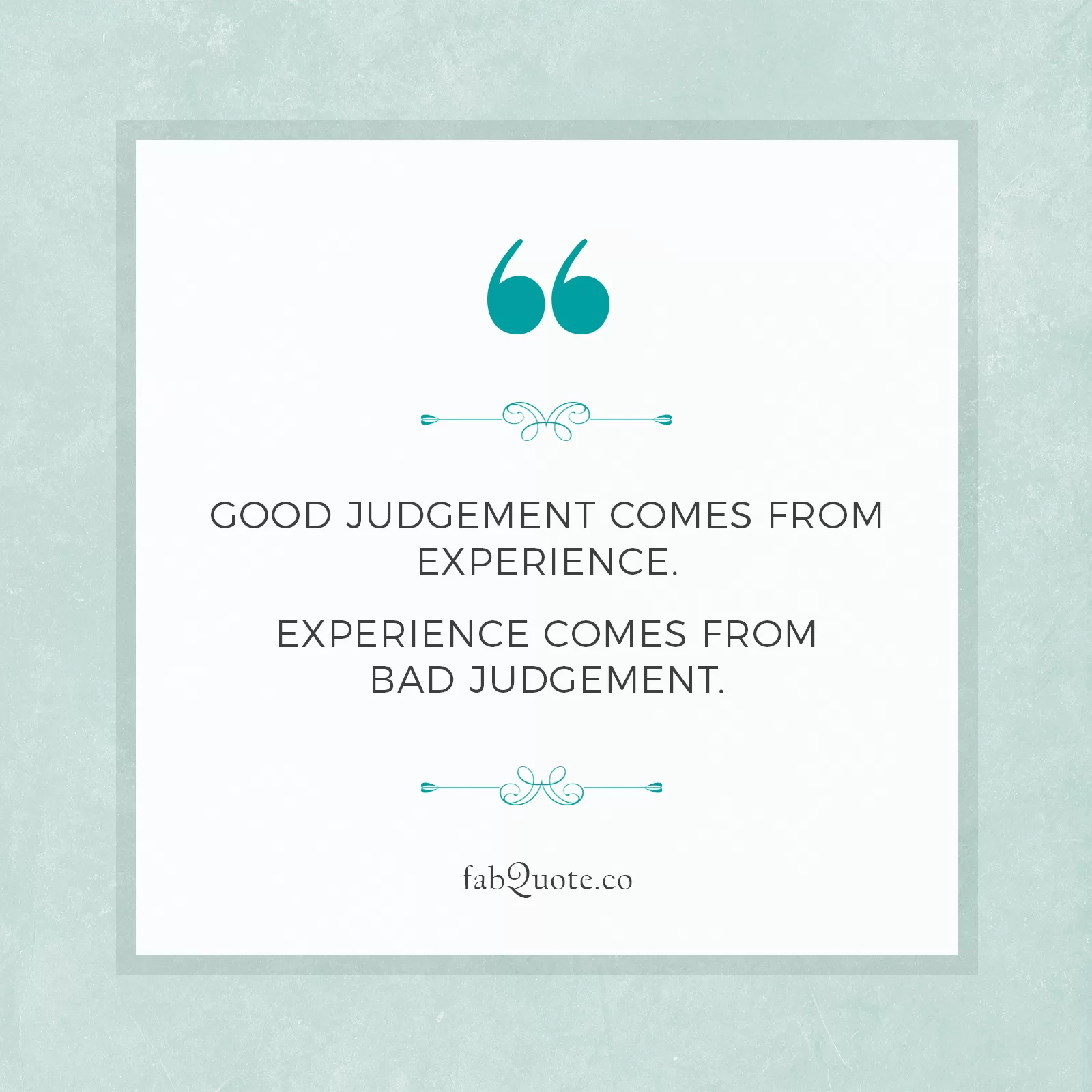 “Good Judgement Comes From Experience. Experience Comes From Bad Judgement.”