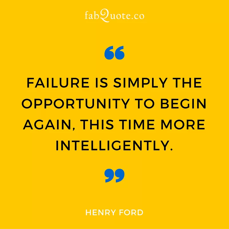 “Failure is simply the opportunity to begin again, this time more intelligently.” Henry Ford