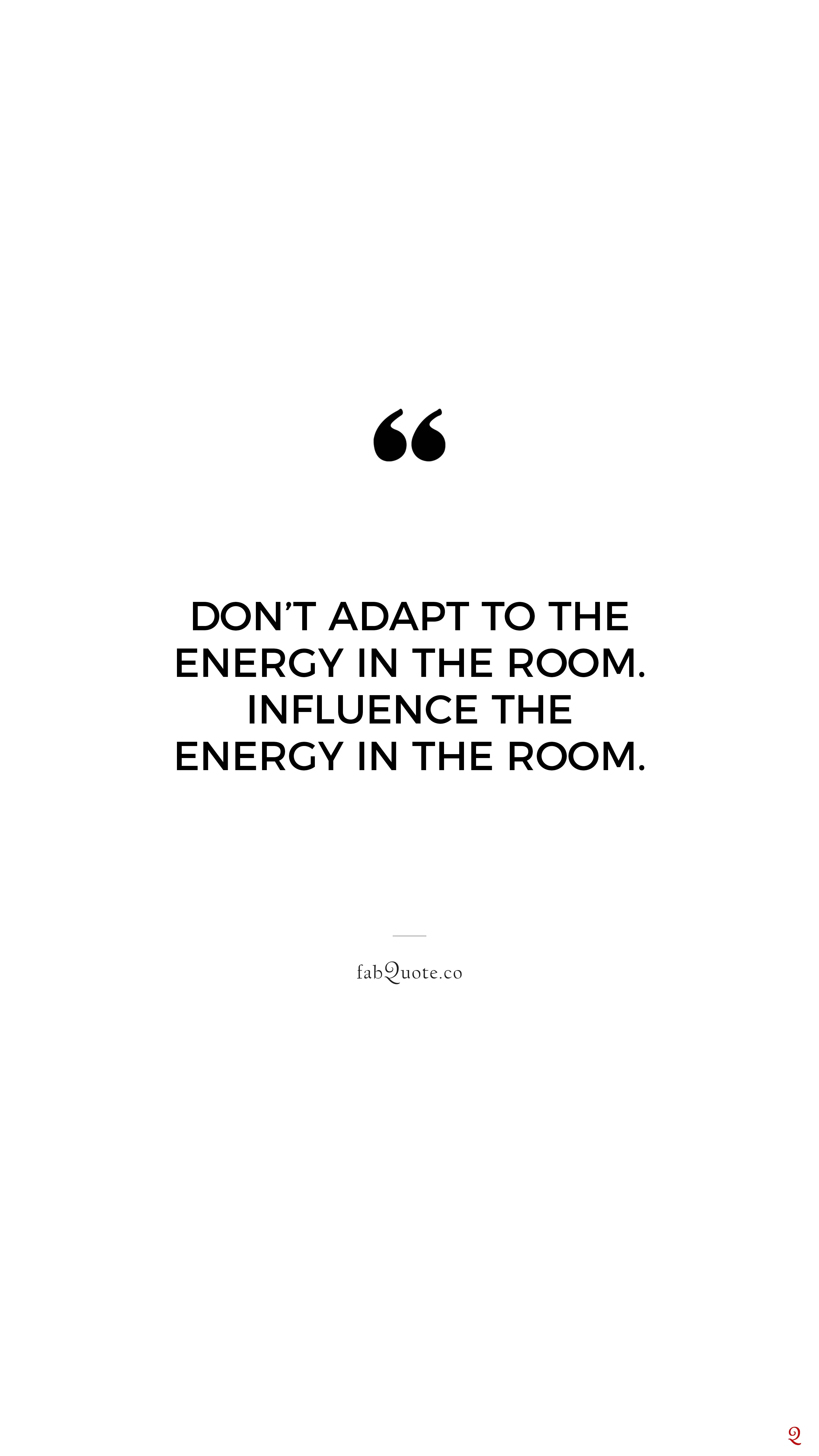 “Do not adapt to the energy in the room. Influence the energy in the room.”