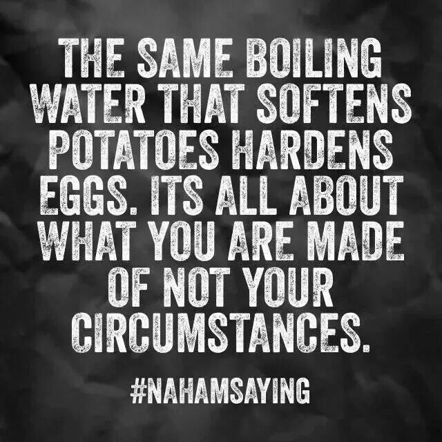 “The same boiling water that softens potatoes hardens eggs. It’s all about what you are made of, not your circumstances.”