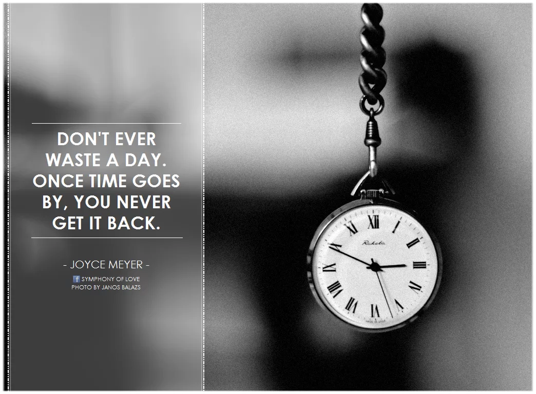 “Don’t ever waste a day. Once time goes by, you never get it back.” Joyce Meyer