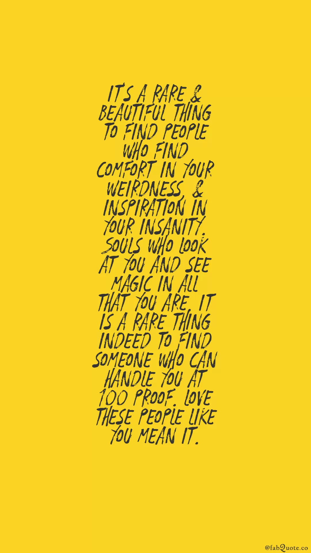 “It’s a rare & beautiful thing to find people who find comfort in your weirdness, & inspiration in your insanity. Souls who look at you and see magic in all that you are. It is a rare thing indeed to find someone who can handle you at 100 proof. Love these people like you mean it.”