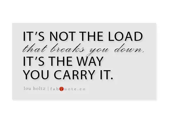 “It’s not the load that breaks you down, it’s the way you carry it.” Lou Holtz