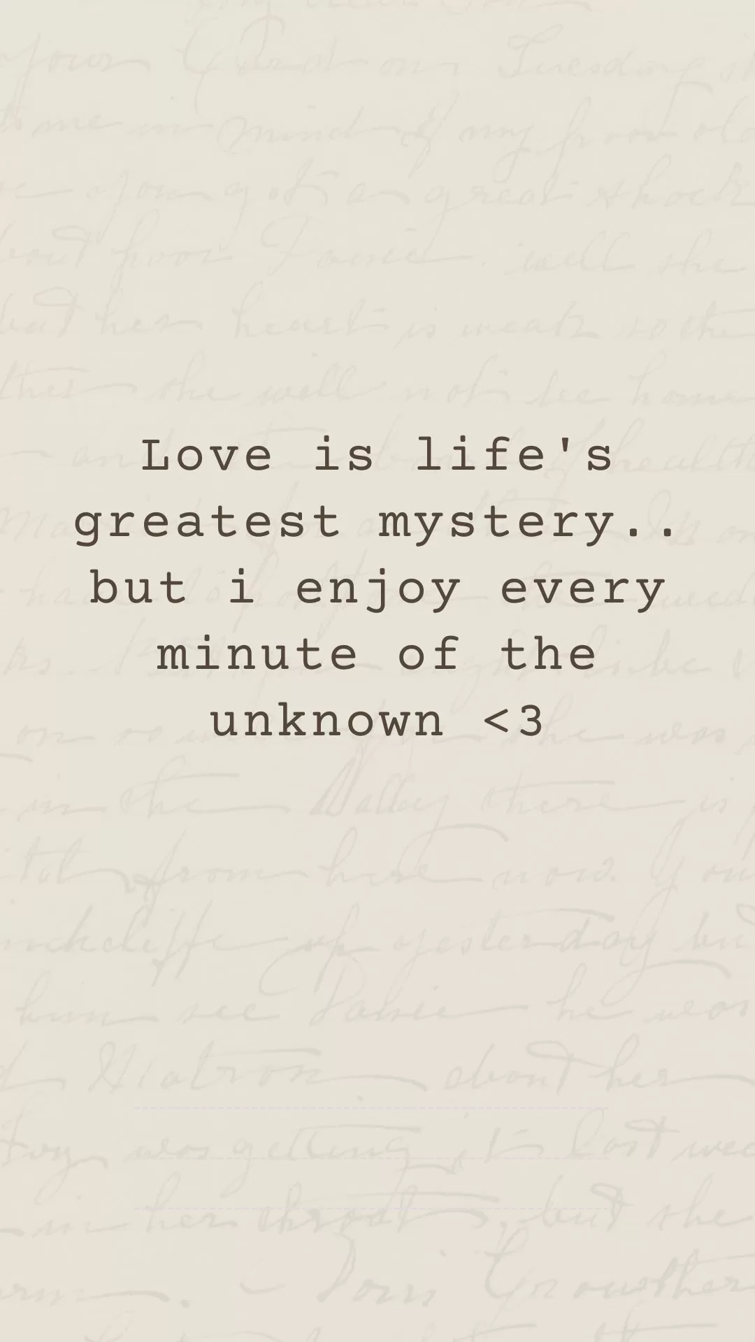Love is life’s greatest mystery… But I enjoy every minute of the unknown.