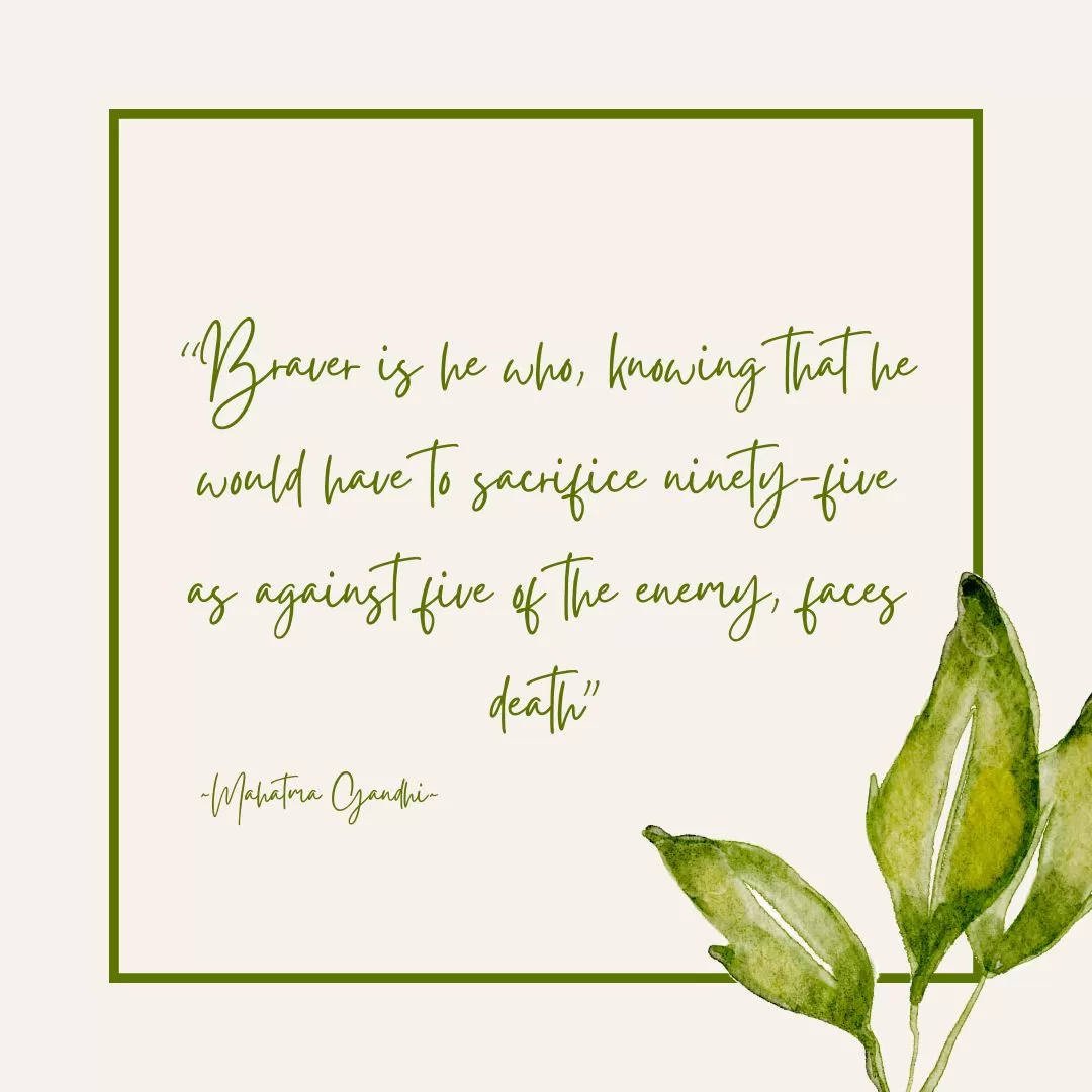 “Braver is he who, knowing that he would have to sacrifice ninety-five as against five of the enemy, faces death.” – Mahatma Gandhi