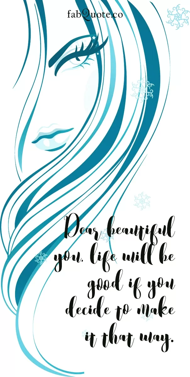 “Dear beautiful you, life will be good if you decide to make it that way.”