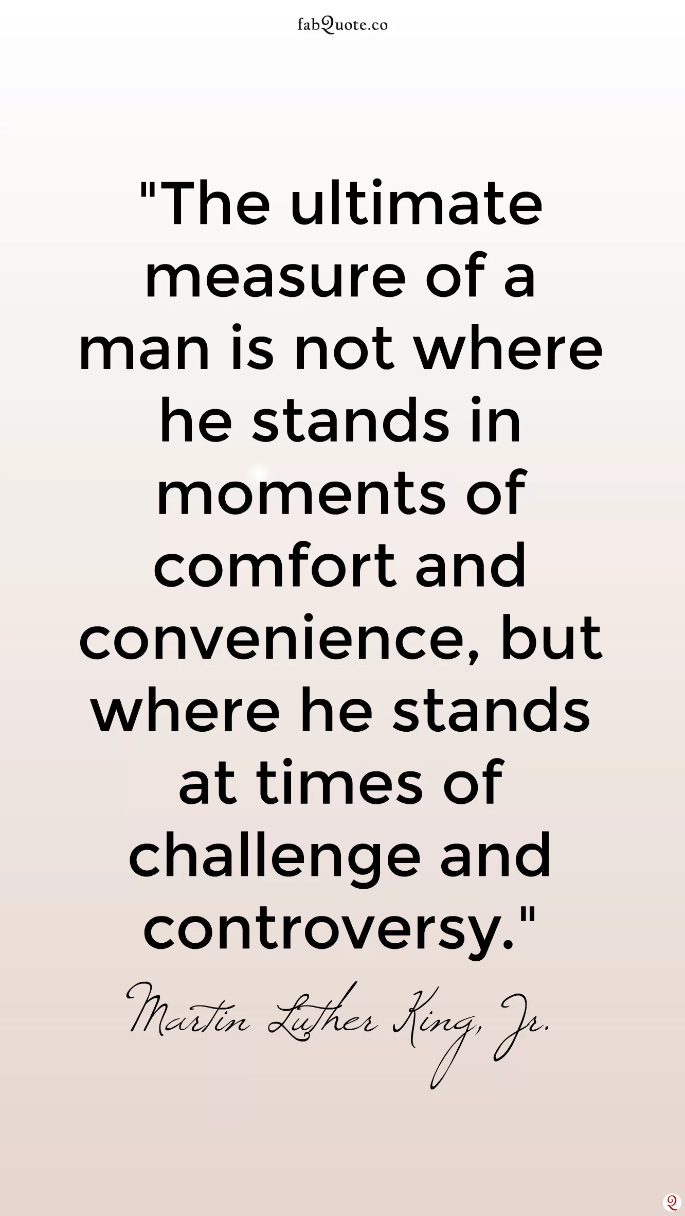 “The ultimate measure of a man is not where he stands in moments of comfort and convenience, but where he stands in times of challenge and controversy.” Martin Luther King Jr.
