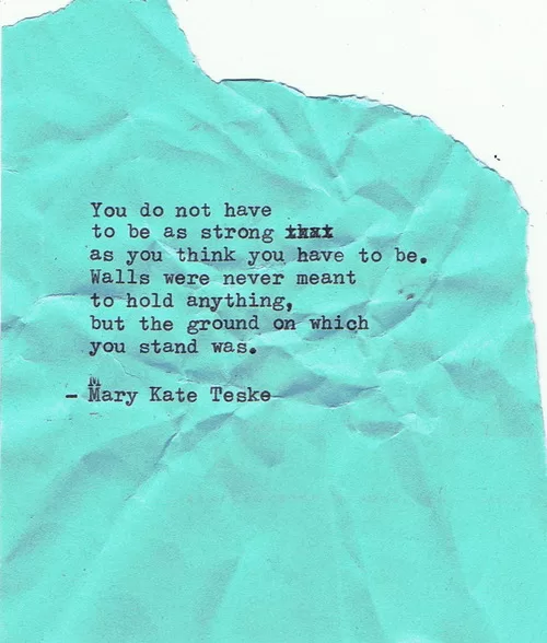 “You don’t have to be as strong as you think you have to be. Walls were never meant to hold anything, but the ground on which you stand was.” Mary Kate Teske