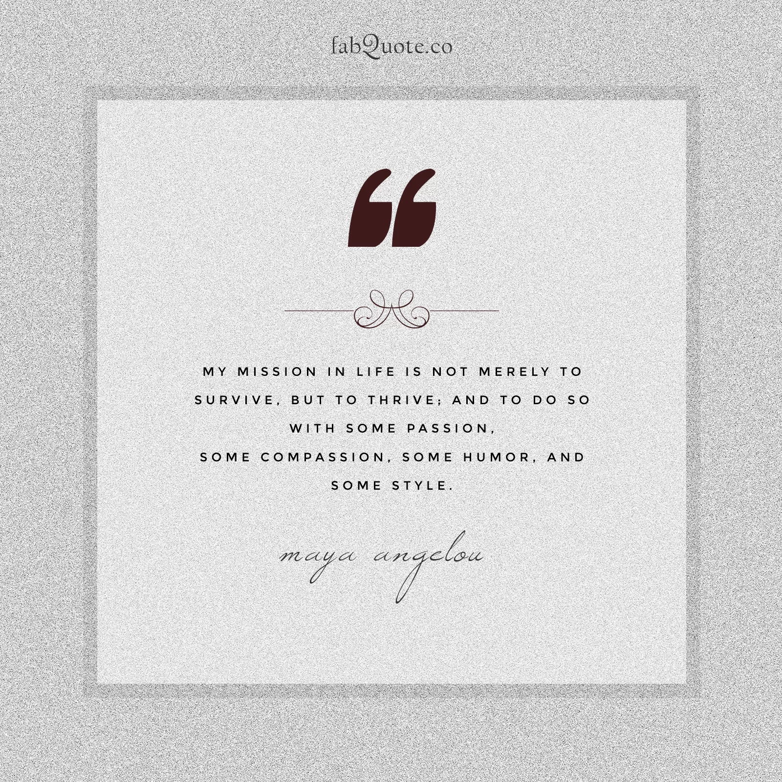 “My mission in life is not merely to survive, but to thrive; and to do so with some passion, some compassion, some humor, and some style.” – Maya Angelou
