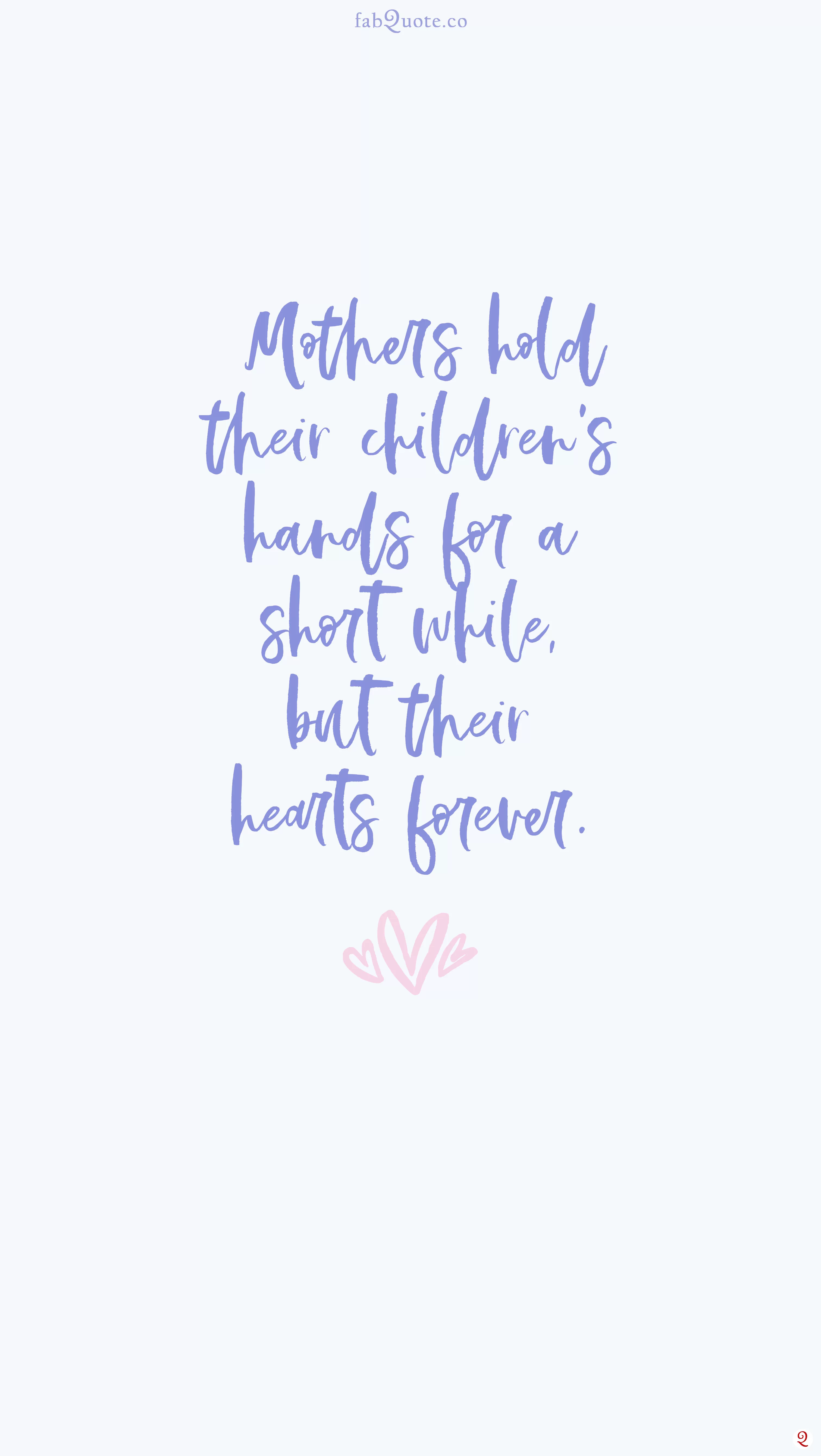 “Mothers hold their children’s hands for a short while, but their hearts forever.”