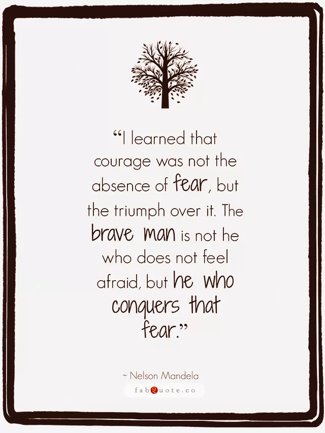 “I learned that courage was not the absence of fear, but the triumph over it. The brave man is not he who does not feel afraid, but he who conquers that fear.” Nelson Mandela