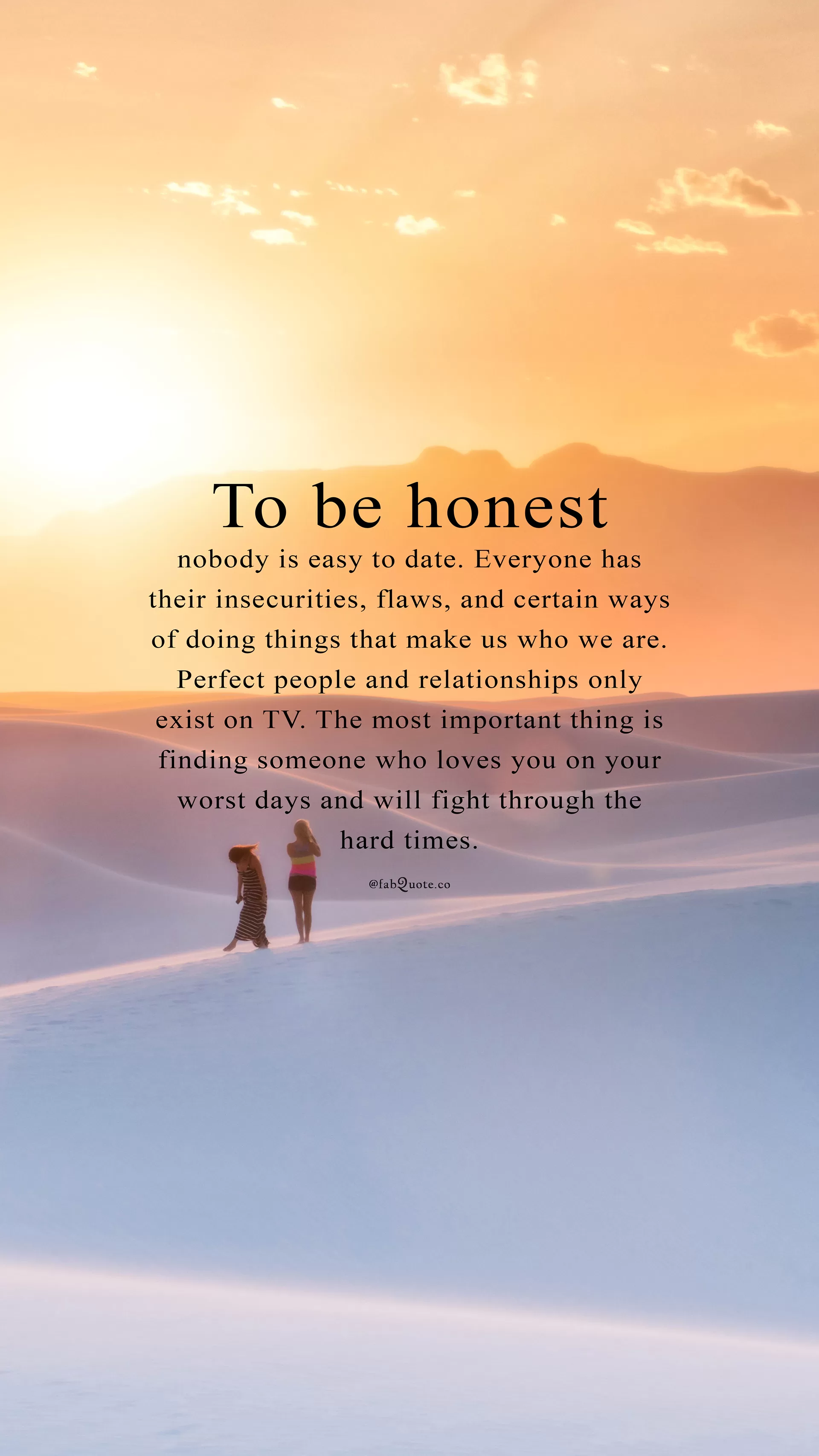 “To be honest, nobody is easy to date. Everyone has their insecurities, flaws, and certain ways of doing things that make us who we are. Perfect people and relationships only exist on TV. The most important thing is finding someone who loves you on your worst days and will fight through the hard times.”