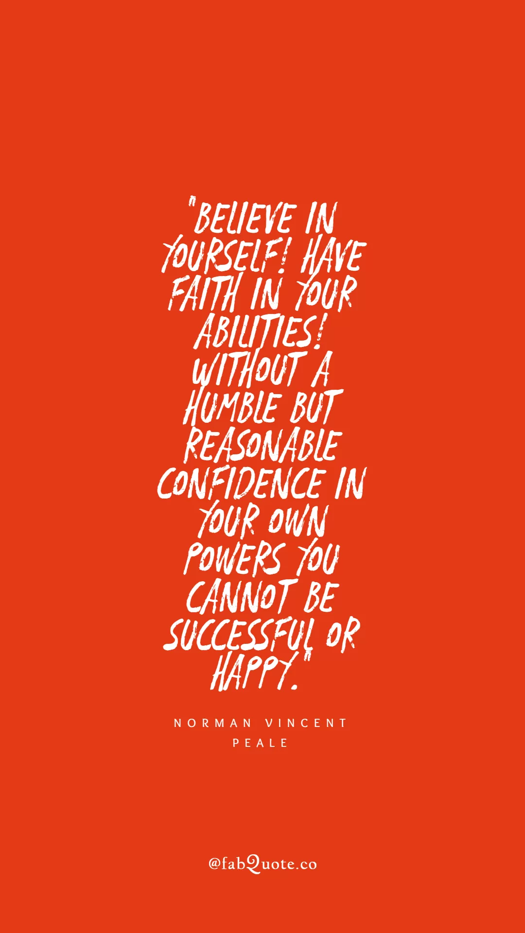 “Believe in yourself! Have faith in your abilities! Without a humble but reasonable confidence in your own powers you cannot be successful or happy.” Norman Vincent Peale
