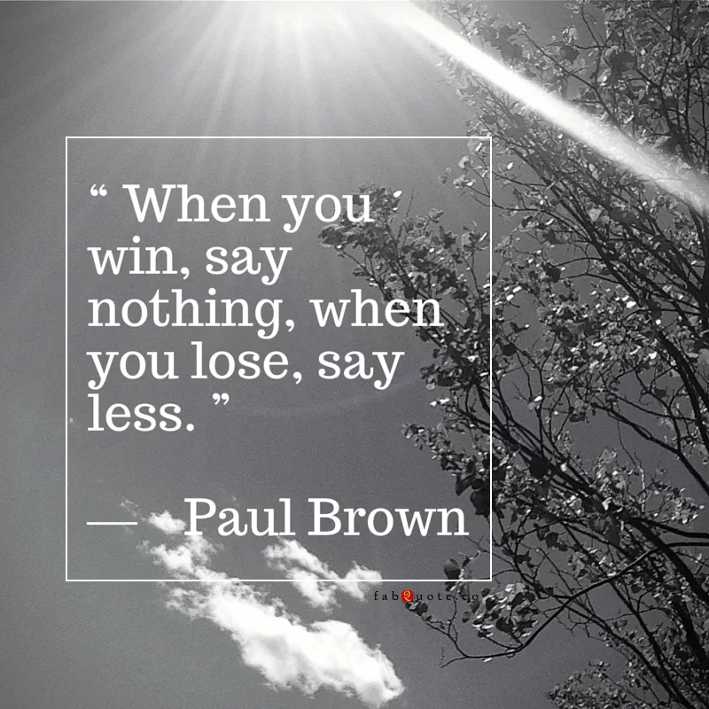 “When you win, say nothing, when you lose, say less.” Paul Brown