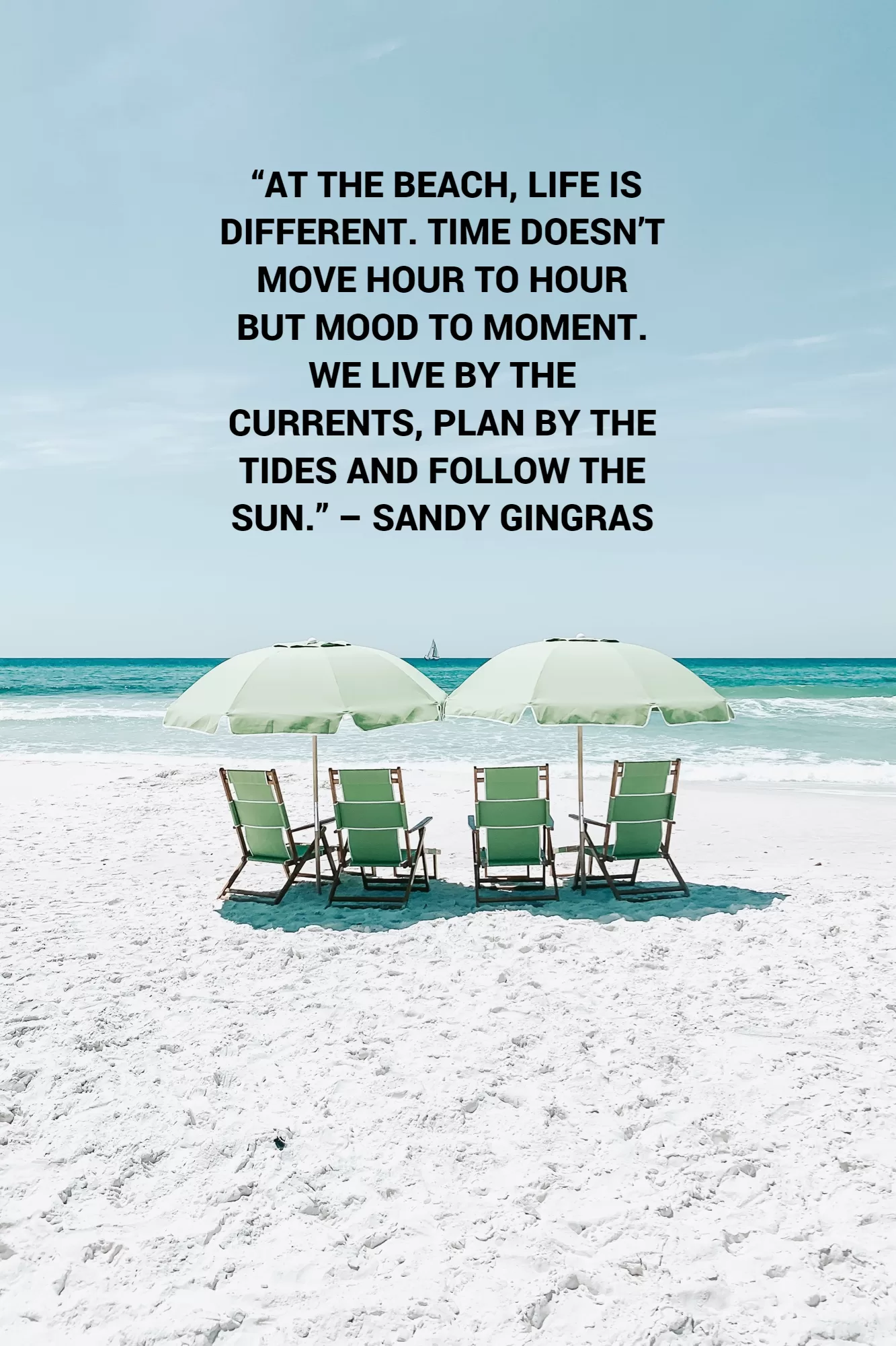 “At the beach, life is different. Time doesn’t move hour to hour but mood to moment. We live by the currents, plan by the tides and follow the sun.” – Sandy Gingras