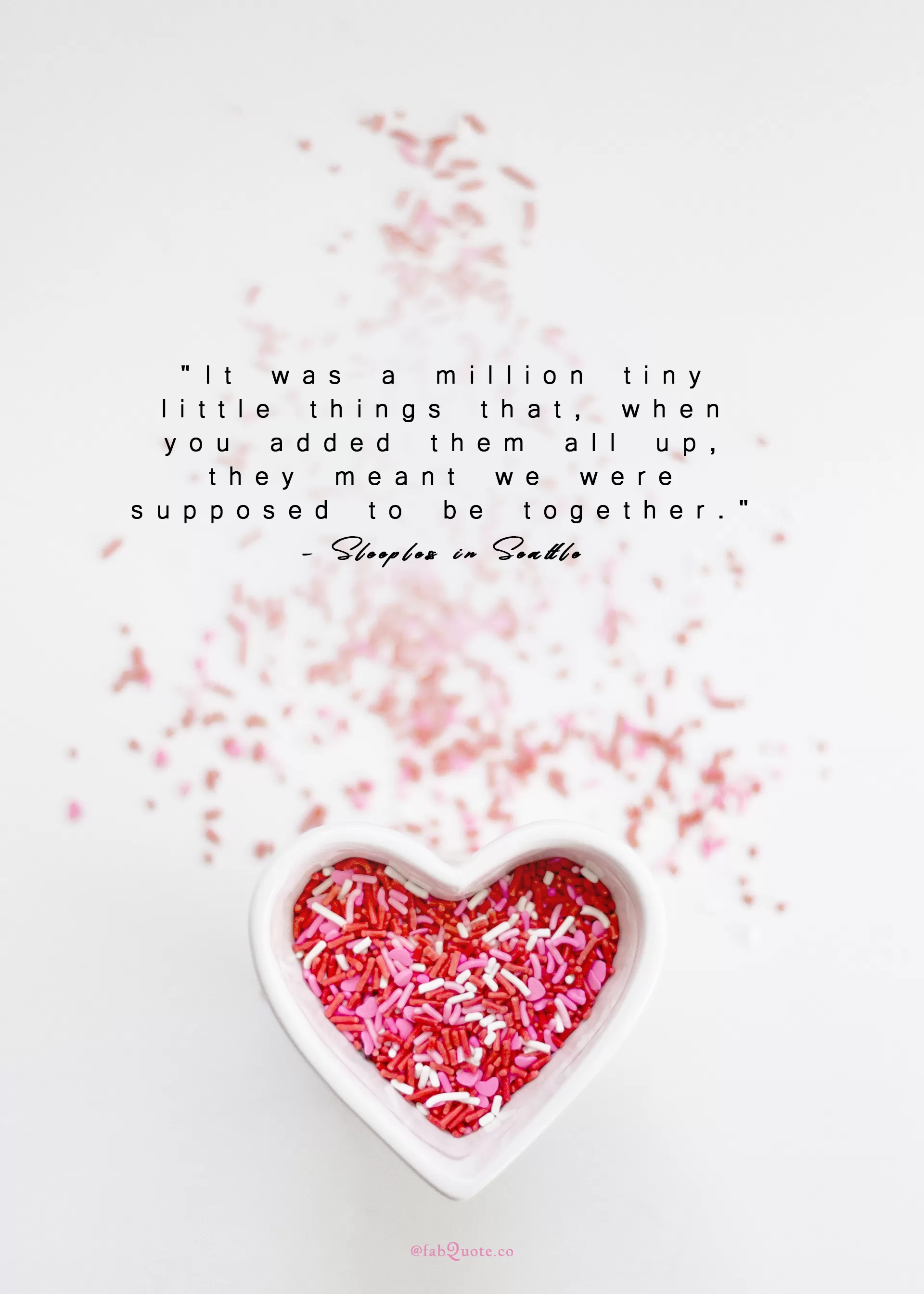 “It was a million tiny little things that, when you added them all up, they meant we were supposed to be together.”– Sleepless in Seattle