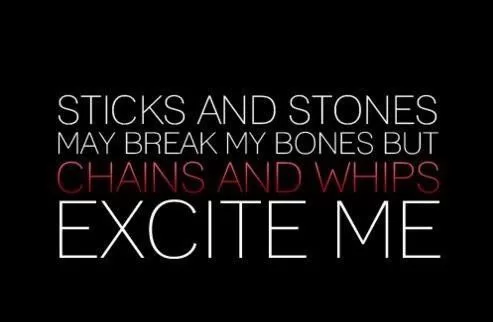 “Sticks and Stones may break my bones, but Chains and Whips excite me” “S&M” song by RIHANNA