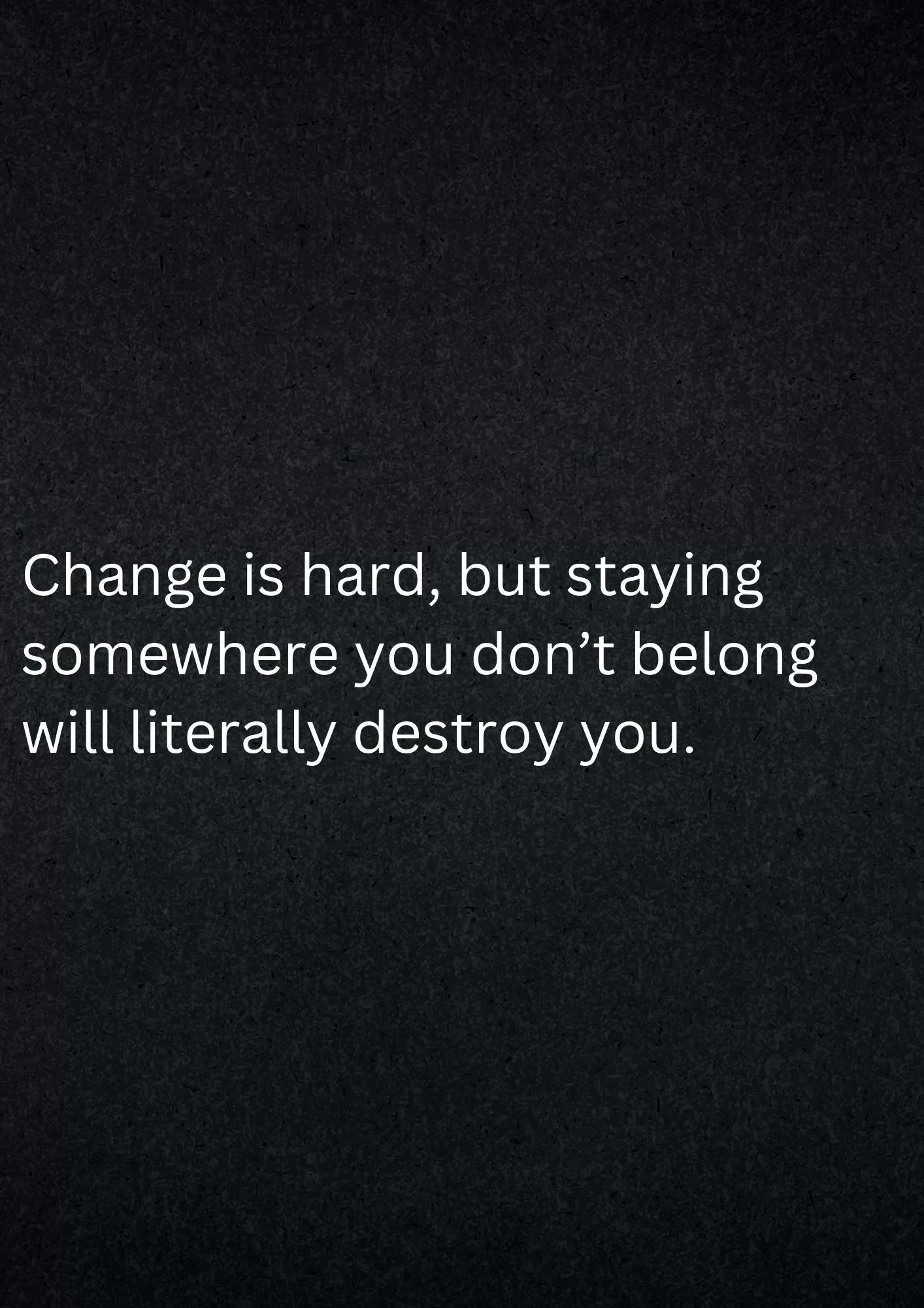 Change is hard, but staying somewhere you don’t belong will literally destroy you.