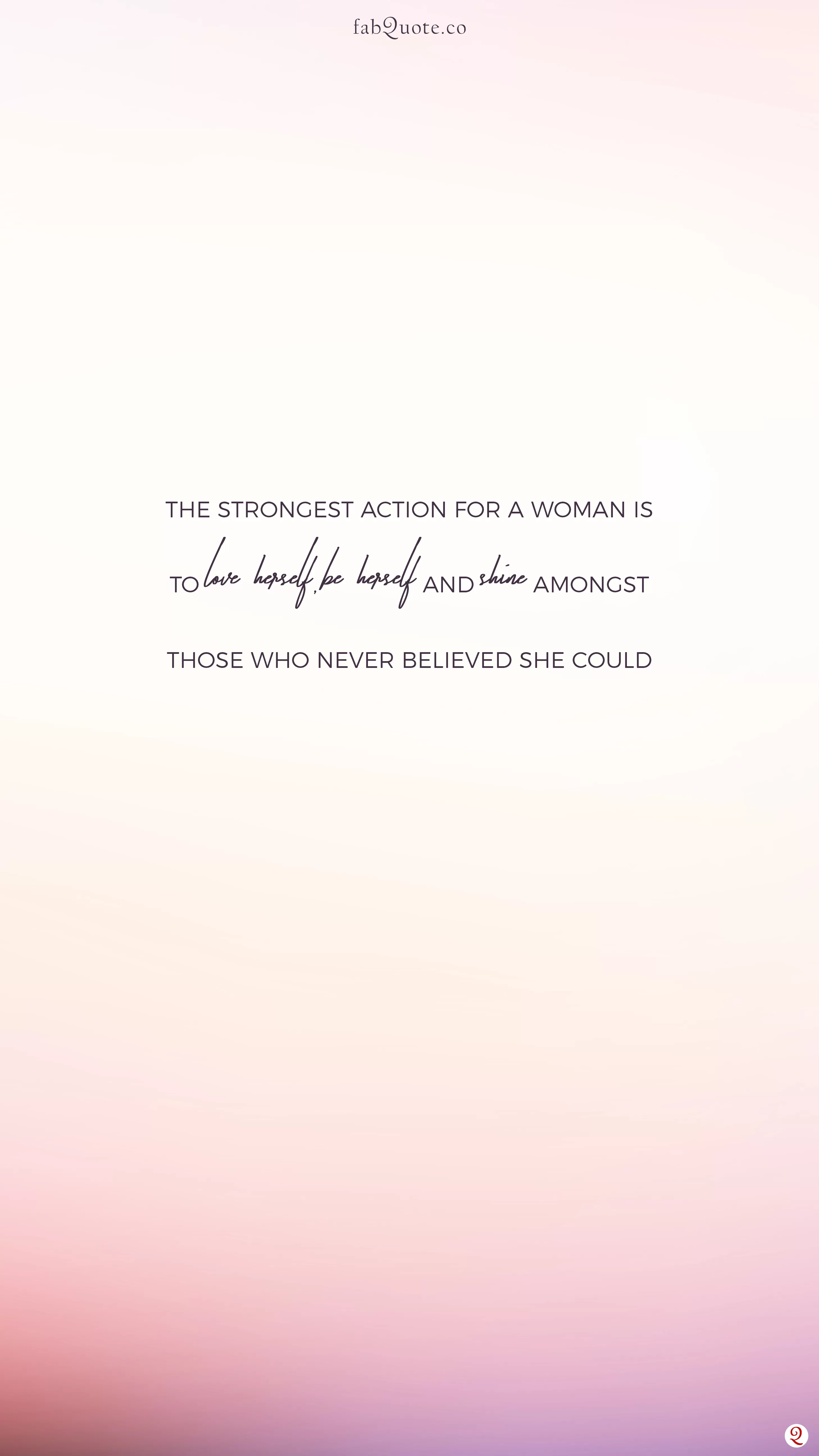 “The strongest action for a woman is to love herself, be herself and shine amongst those who never believed she could.”