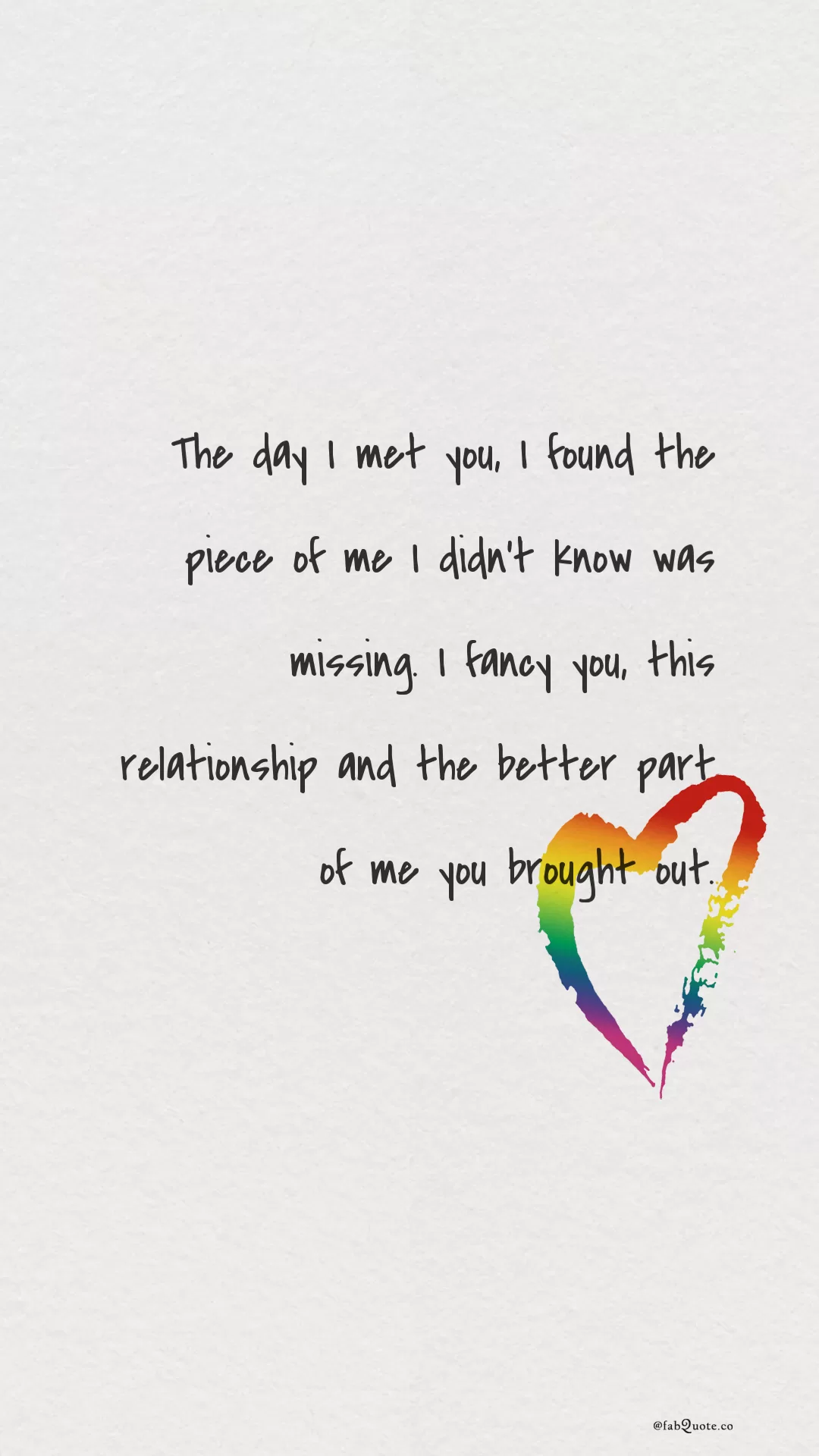 “The day I met you, I found the piece of me I didn’t know was missing. I fancy you, this relationship and the better part of me you brought out.”
