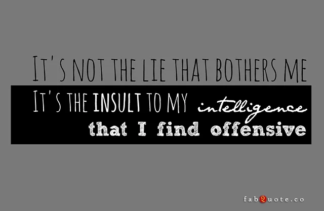 “It’s not the lie that bothers me, it’s the insult to my intelligence that offends me.”