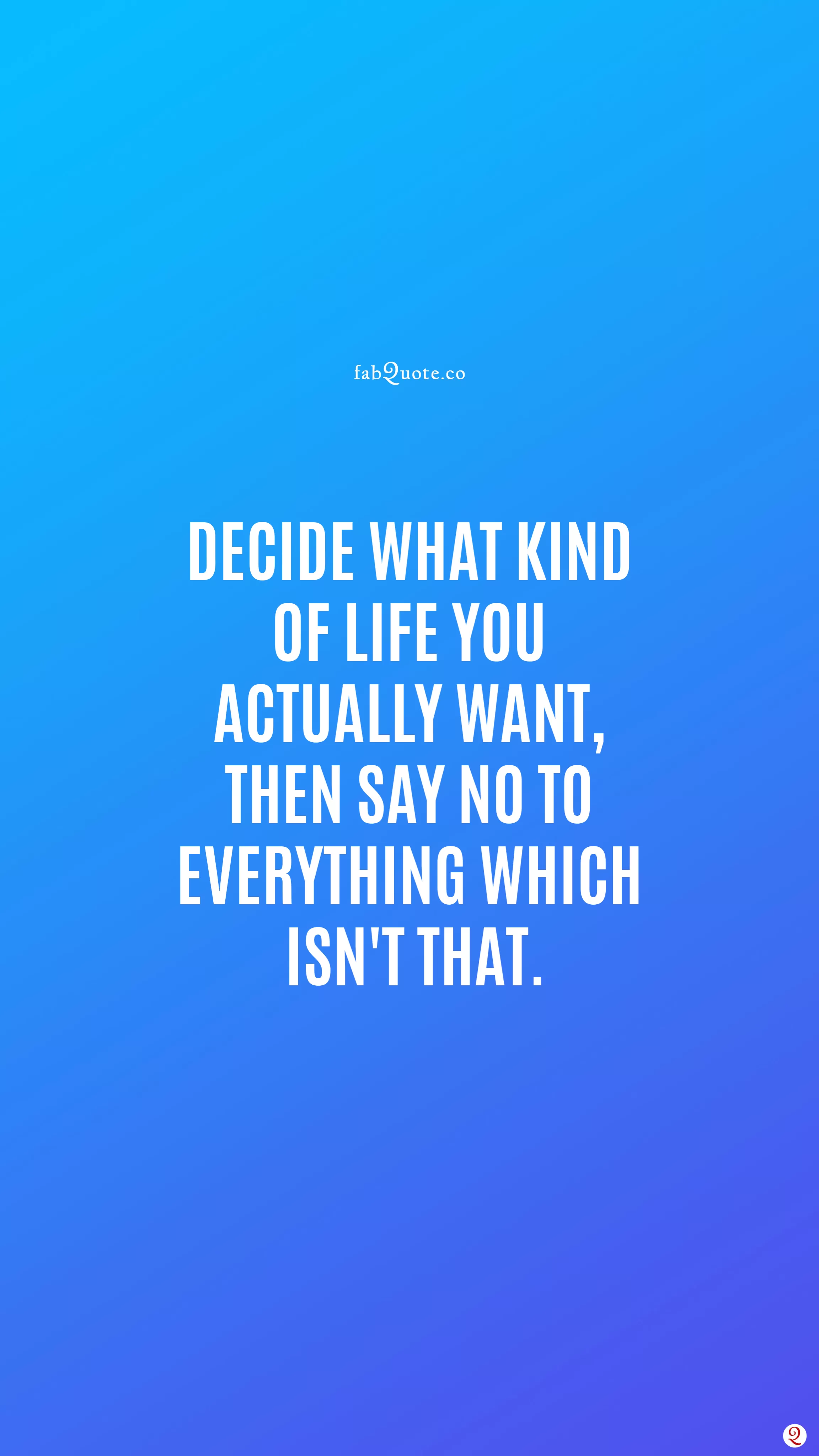 “Decide what kind of life you actually want, then say NO to everything which isn’t that.”