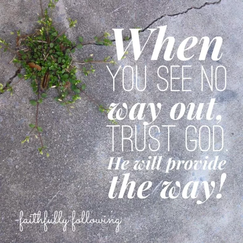 “When you see no way out, trust God. He will provide the way.”