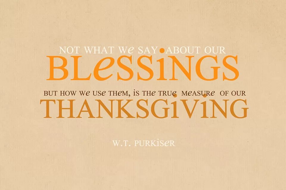 “Not what we say about our blessings, but how we use them is the true measure of our Thanksgiving” W.T. Purkiser