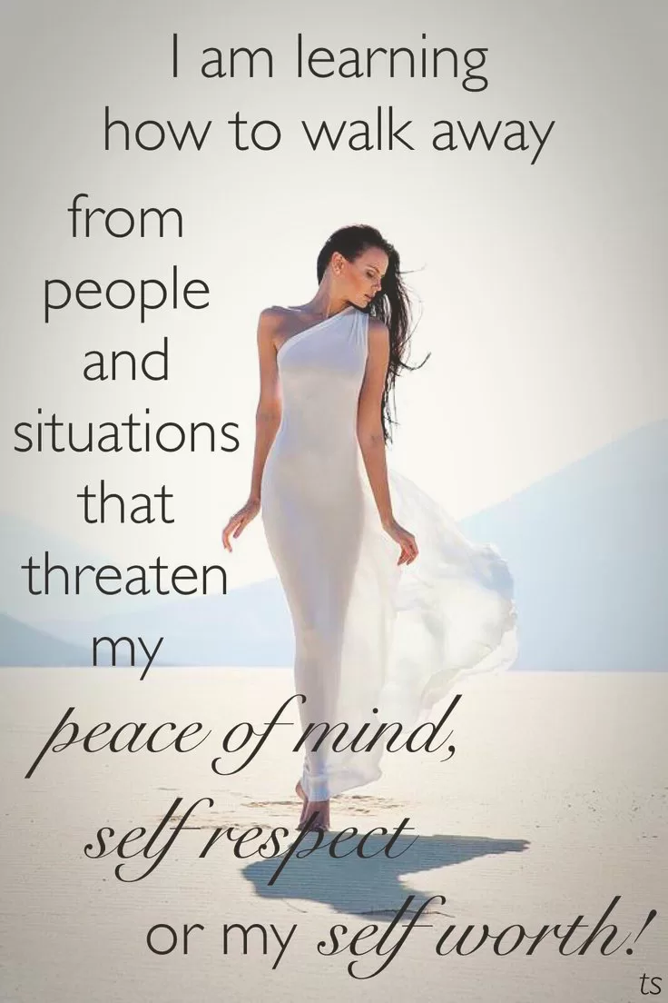 “I am learning how to walk away from people and situations that threaten my peace of mind, self respect and self worth.”
