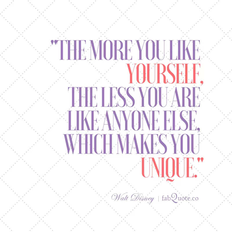 “The more you like yourself, the less you are like anyone else, which makes you unique.”