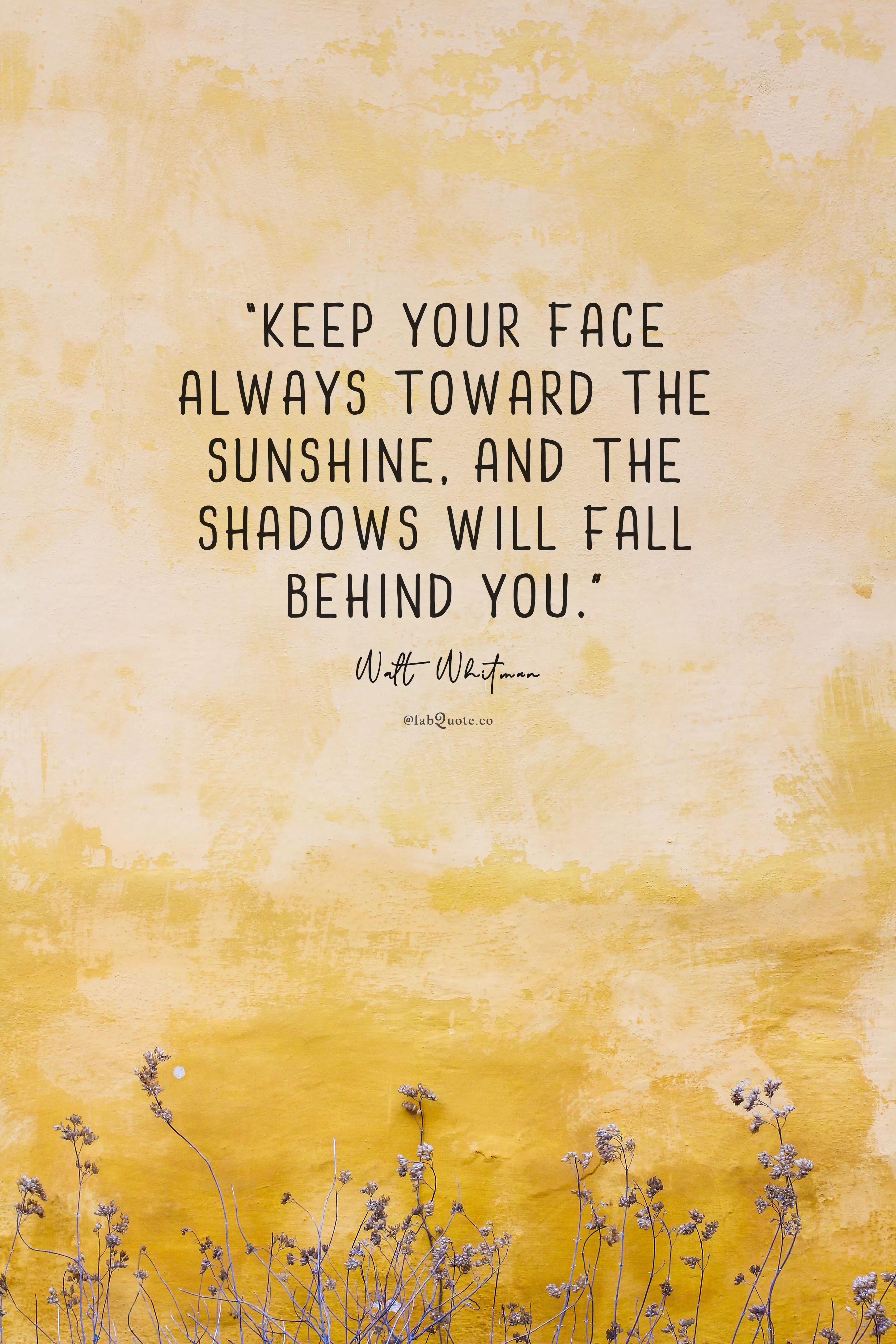 “Keep your face always toward the sunshine – and shadows will fall behind you.” Walt Whitman