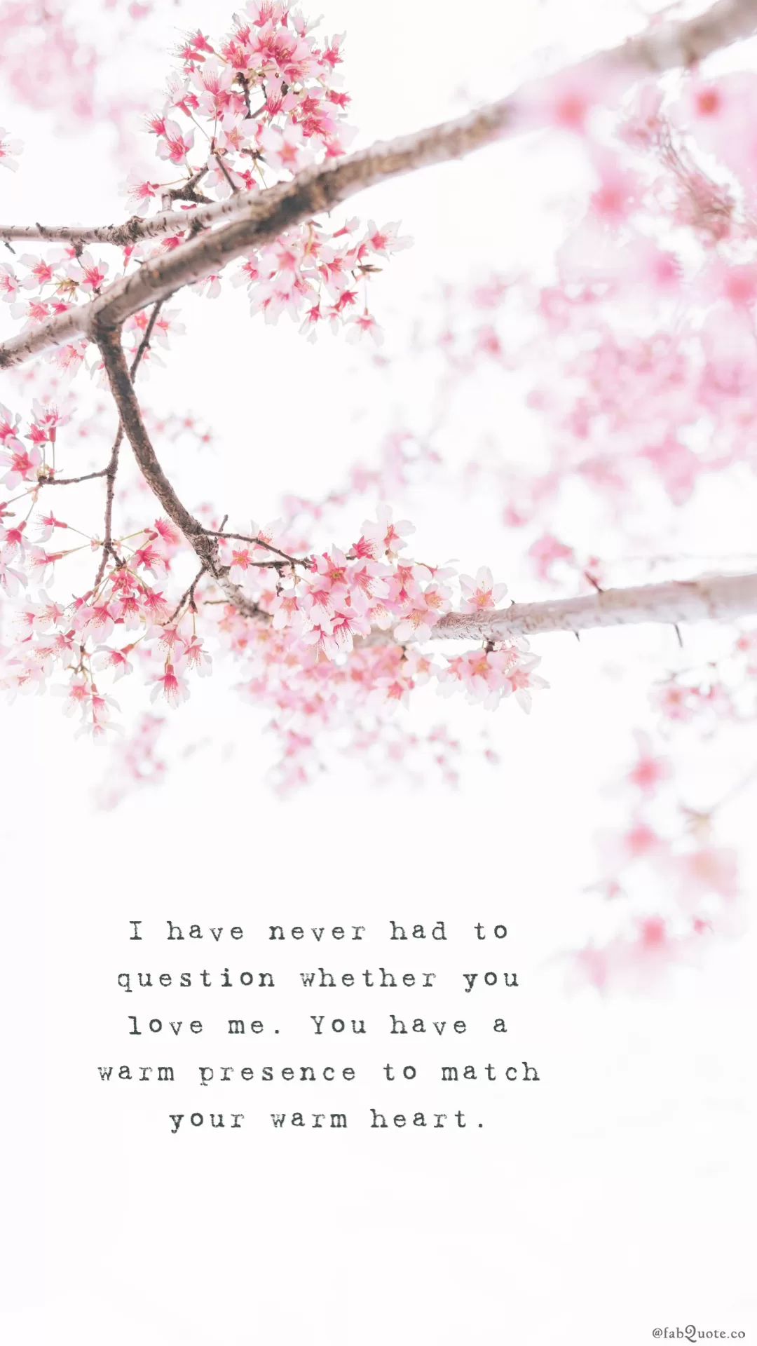 “I have never had to question whether you love me. You have a warm presence to match your warm heart.”
