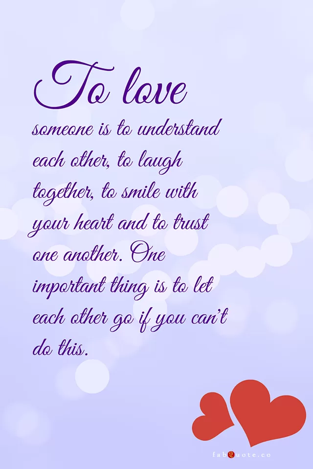 “To love someone is to understand each other, to laugh together, to smile with your heart and to trust one another. One important thing is to let each other go if you can’t do this.“
