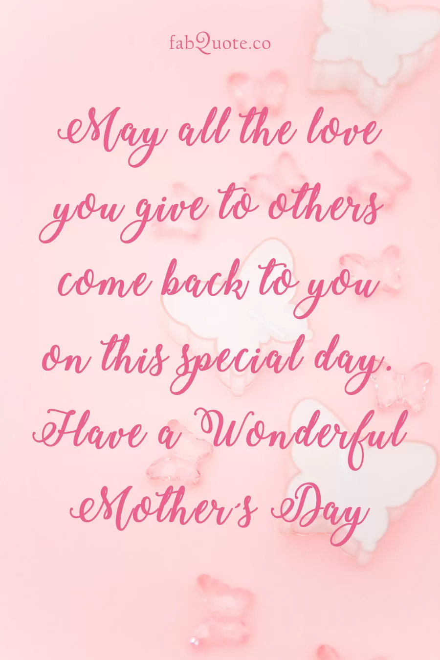 12″May all the love you give to others come back to you on this special day. Have a Wonderful Mother’s Day”