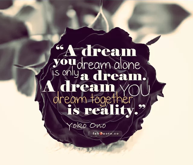 “A dream you dream alone is only a dream. A dream you dream together is reality.” Yoko Ono