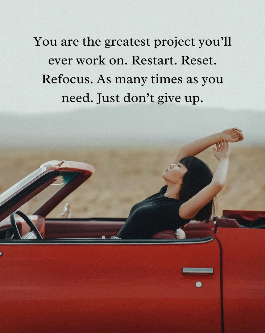 “You are the greatest project you’ll ever work on. Restart. Reset. Refocus. As many times as you need. Just don’t give up.“